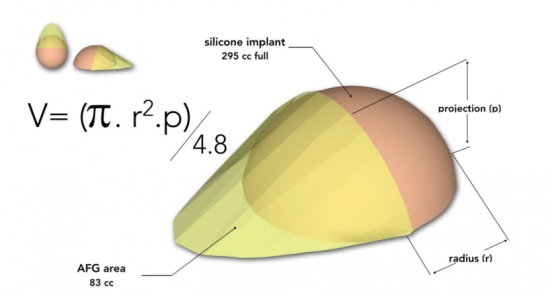 Este estudo, publicado no Aesthetic Surgery Journal, apresenta um método baseado em fórmula matemática, que utiliza o volume do implante e projeção, para prever o volume necessário de gordura. Os autores apontam que é comum cirurgiões plásticos utilizarem da experiência e intuição para estimar o volume de EAG, contudo há risco de avaliações incorretas, resultando em remoção desnecessária de gordura.
