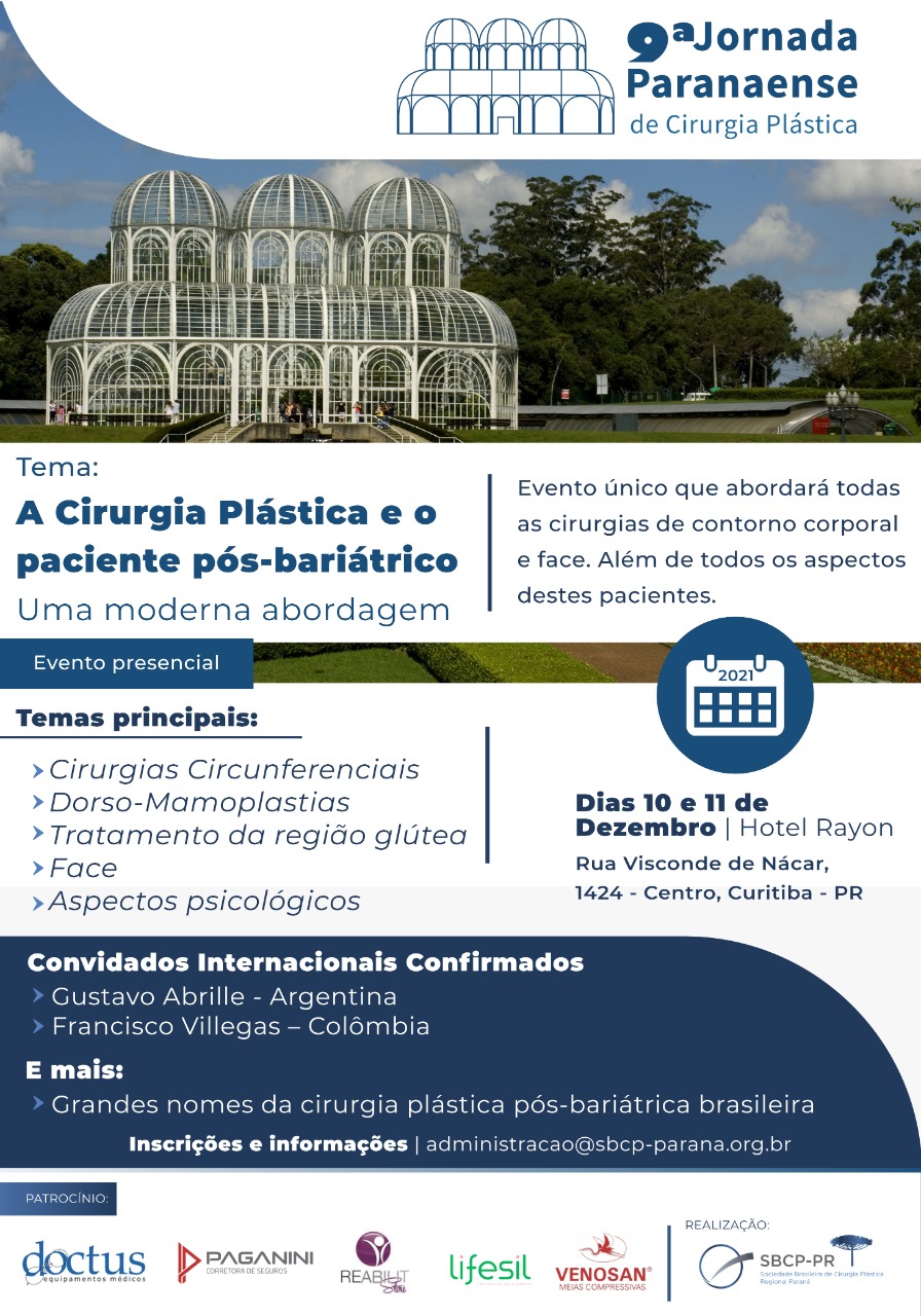 O tema da 9ª Jornada Paranaense será A Cirurgia Plástica e o paciente pós-bariatrico, uma moderna abordagem.