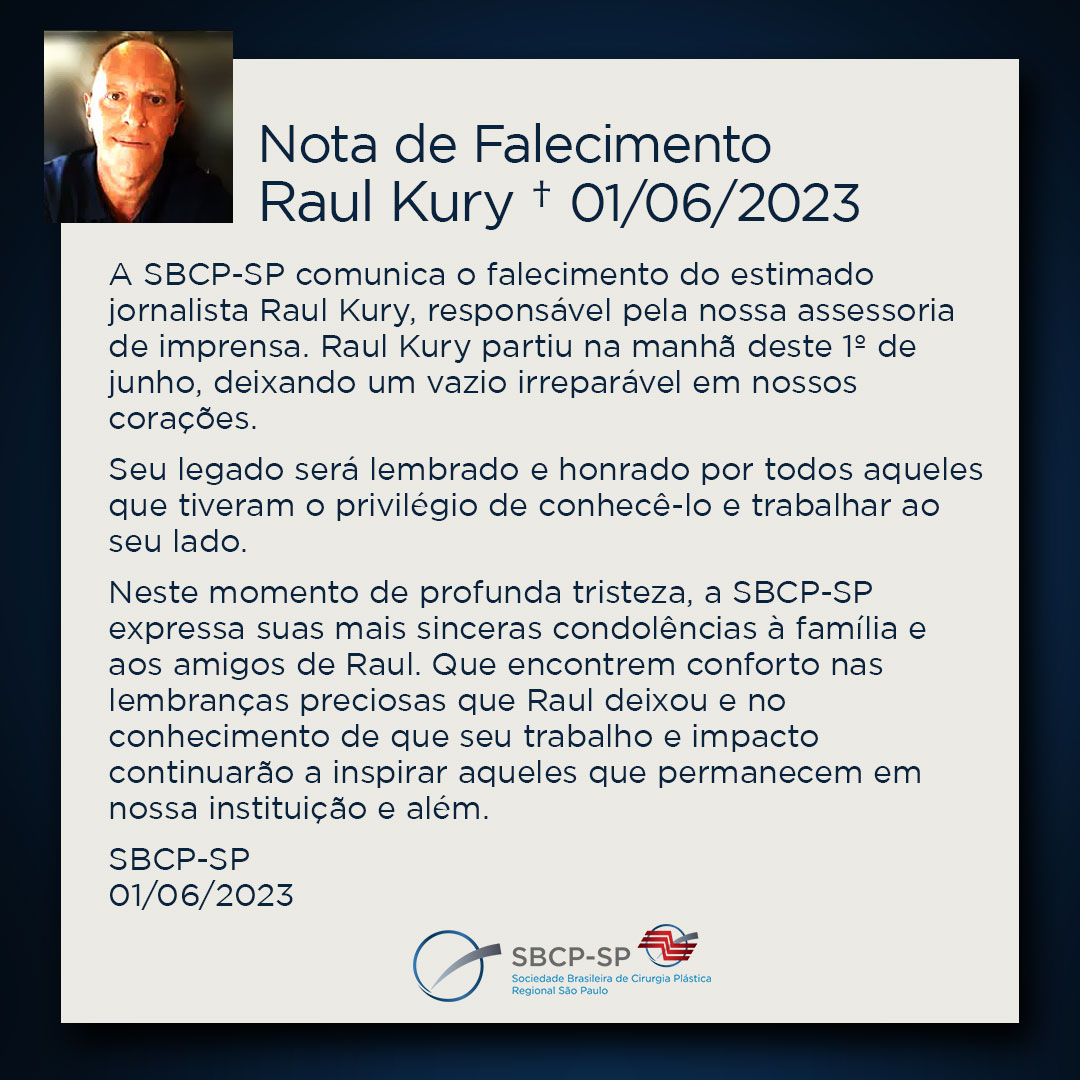 A SBCP-SP comunica o falecimento do estimado jornalista Raul Kury, responsável pela nossa assessoria de imprensa. Raul Kury partiu na manhã deste 1º de junho, deixando um vazio irreparável em nossos corações.