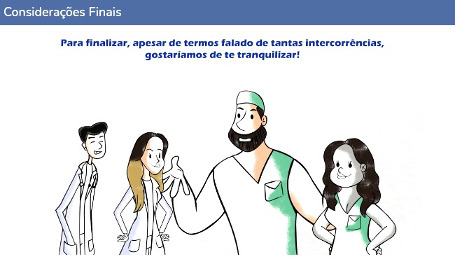 Tratam-se de animações que esclarecem, com clareza e de forma muito visual, as questões ligadas aos procedimentos cirúrgicos, como lipoaspiração, prótese de mama e outros. “A animação explica possíveis intercorrências, facilitando a compreensão do paciente”, conta.