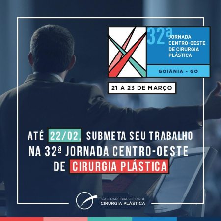 Convidamos todos os membros da SBCP a enviarem seu Trabalho Científico para a 32ª Jornada Centro-Oeste de Cirurgia Plástica, que ocorrerá de 21 a 23 de março, no K Hotel em Goiânia, GO.