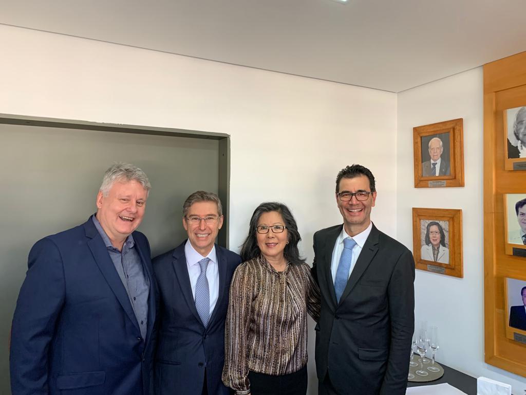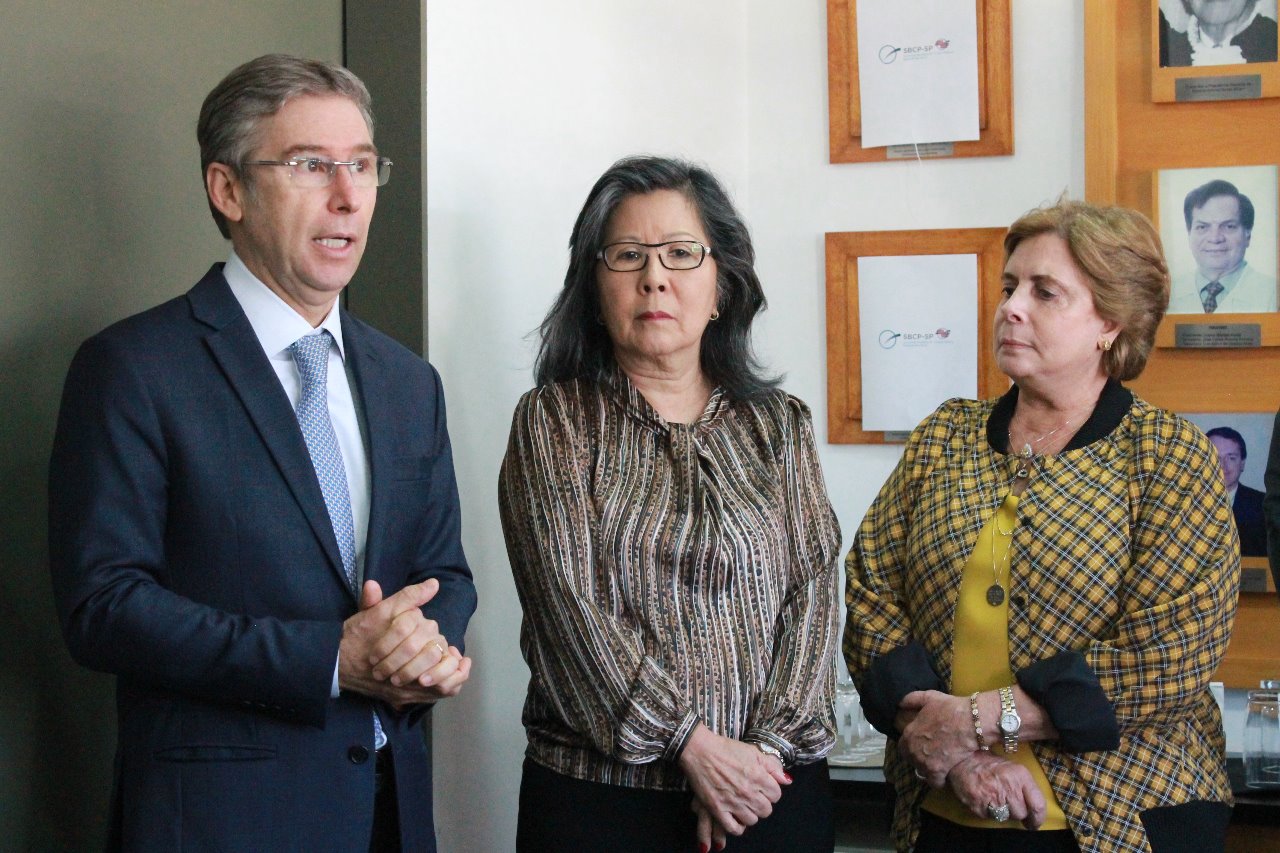 Ao lado do secretário Dr. Felipe Coutinho e do tesoureiro Dr. Eugênio Cação, Dr. Elvio homenageou Dr. Baroudi – na figura de sua esposa Bea Baroudi – e a Dra. Lydia e, durante o discurso, reforçou a relevância de sua atuação e legado à cirurgia plástica regional, nacional e internacional.