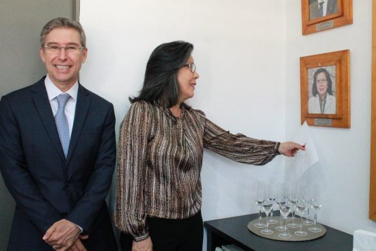 Bea Baroudi, esposa do Dr. Baroudi, também se emocionou ao ver a foto do cirurgião plástico eternizado como patrono e parabenizou também a Dra. Lydia Masako pela homenagem